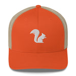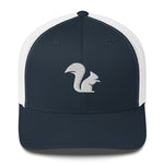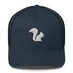 Top off your look with woodland swagger and classic Americana style in the Big Squirrel Trucker Cap from Squirrel Saloon Trading Company. Featuring a bold, embroidered white squirrel silhouette front and center, this trucker hat is the perfect blend of playful personality and rugged utility.