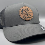 The centerpiece of this rugged cap is a genuine leather patch, embossed with an axe, spear, acorn, and forest scenery, embodying the spirit of the wild. A fearless squirrel perches above, adding that signature Squirrel Saloon touch, while "Squirrel Saloon – Est. 2019" proudly marks the legacy of adventure and camaraderie.