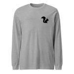 Stay stylish and comfortable with the Crossed Hatchets Long Sleeve Tee. Made from soft, breathable fabric, this unisex shirt features bold front and back graphics that celebrate adventure and craftsmanship. The chest displays a clean squirrel emblem, while the back showcases a rugged crossed-hatchet mountain design with "Squirrel Saloon Trading Company" lettering.