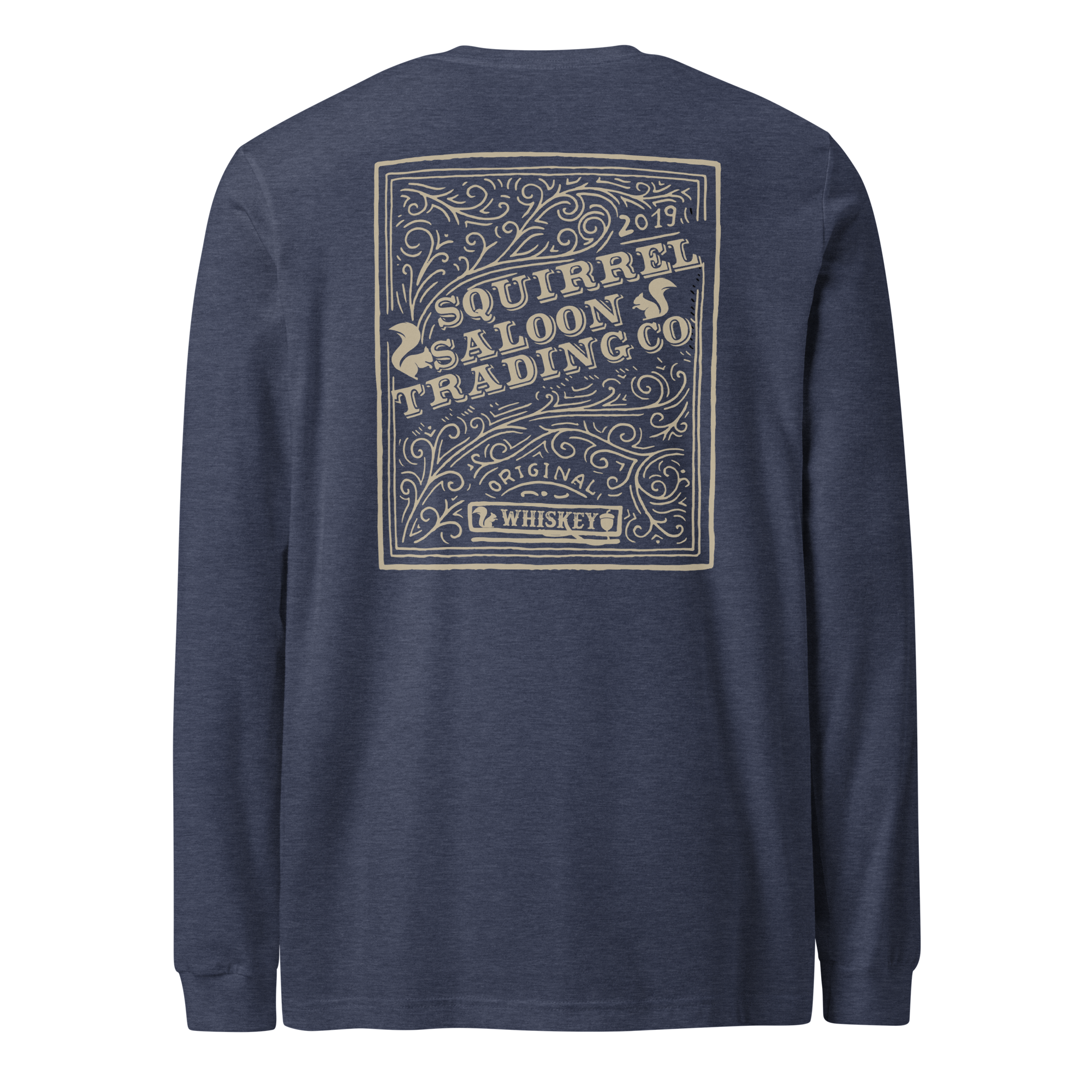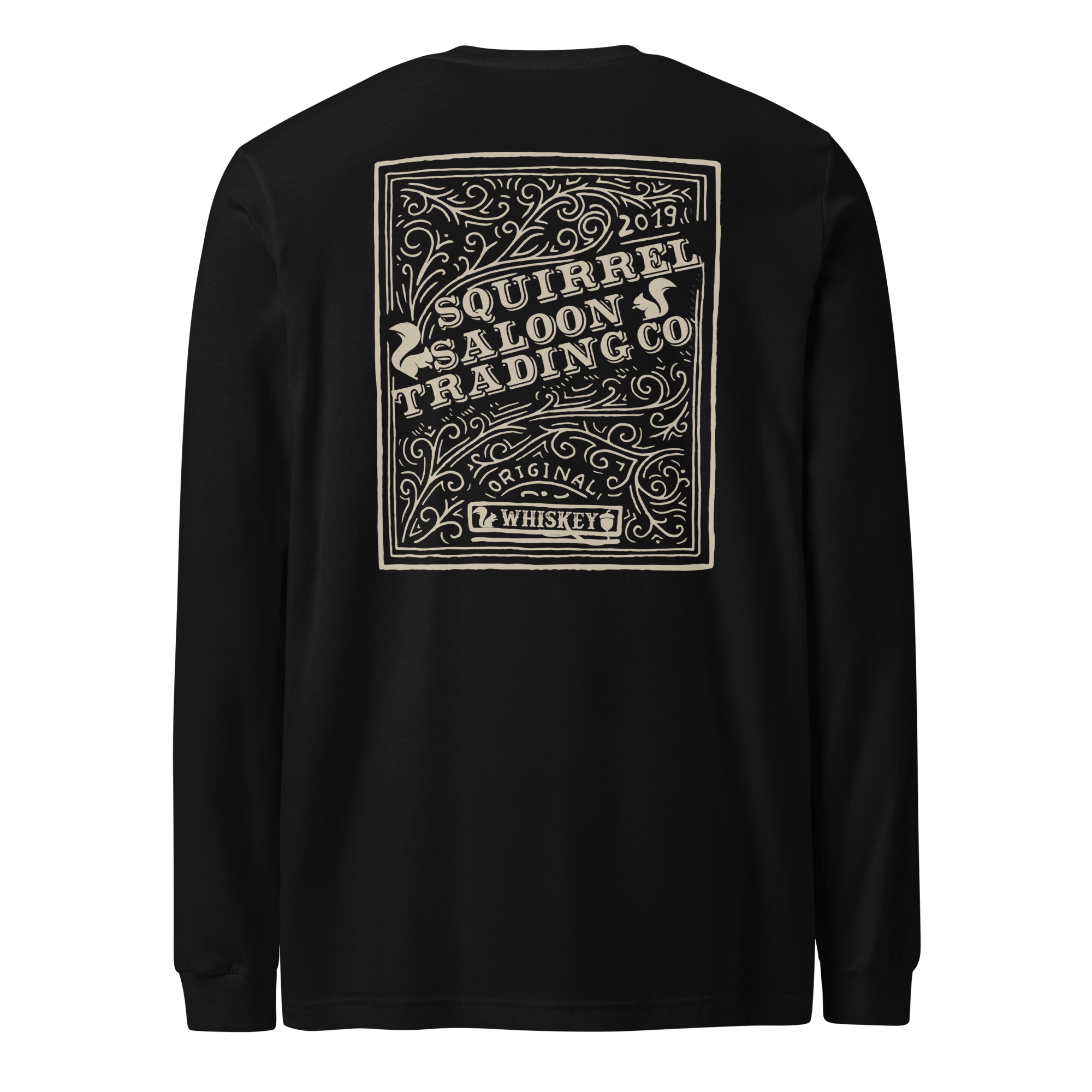 Elevate your wardrobe with the Squirrel Saloon Trading Co. Whiskey Long Sleeve Tee, crafted for comfort, character, and a touch of frontier charm. Featuring an intricately detailed vintage-style back graphic inspired by old whiskey label art, this long sleeve shirt brings rugged personality to every outing.