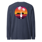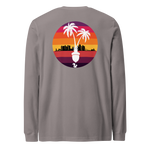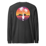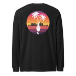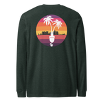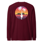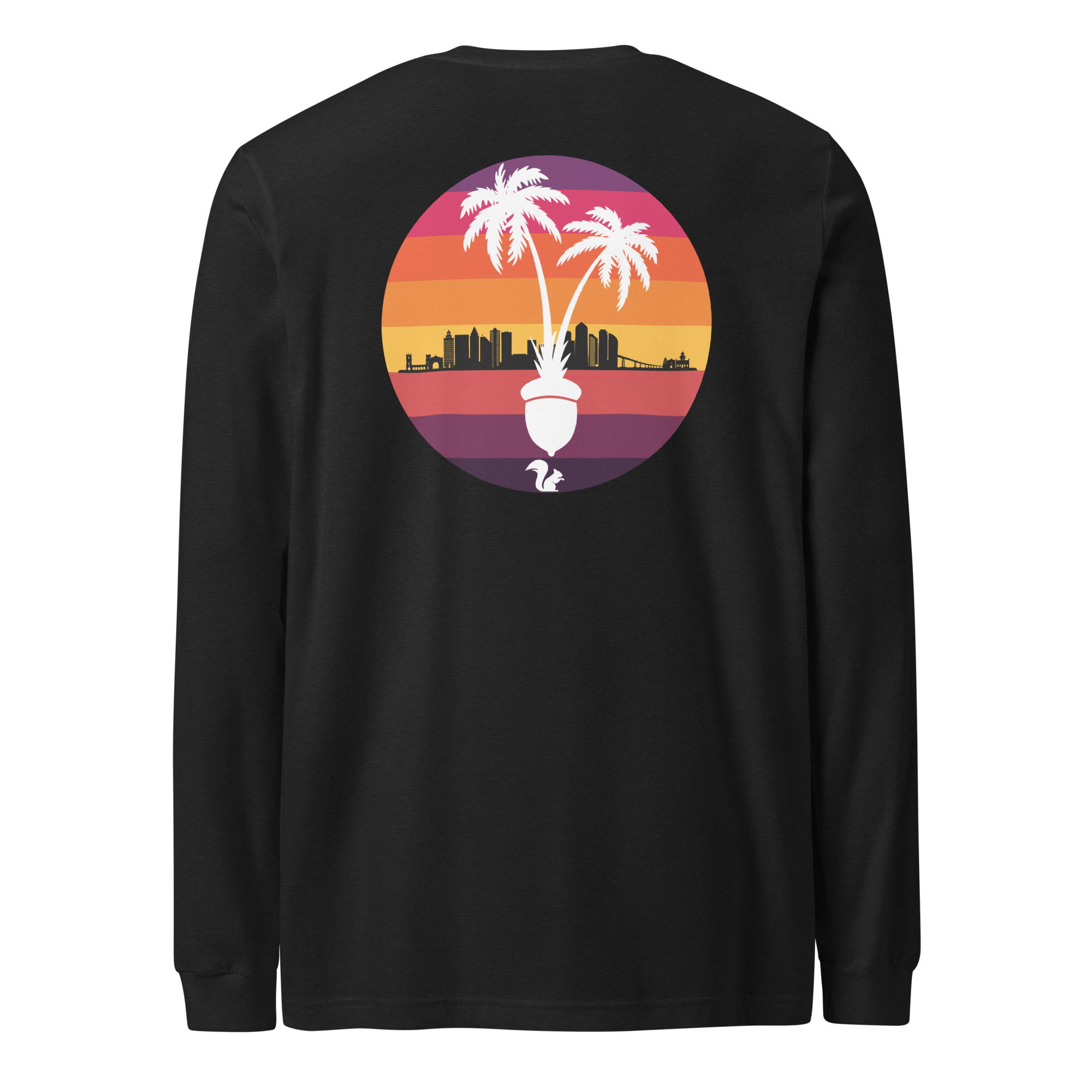 Capture those laid-back West Coast vibes with the Sunset San Diego Long Sleeve Tee. Featuring a clean squirrel silhouette on the front and a bold, retro-style sunset graphic on the back, this design brings together palm trees, city skyline, and classic Squirrel Saloon charm. The acorn-palm mashup adds a playful twist, making this the perfect shirt for anyone who loves sunshine, surfside evenings, and a little squirrel-powered attitude.