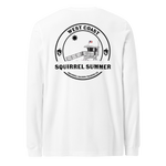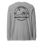 Bring laid-back coastal vibes to your everyday style with the West Coast Squirrel Summer Long Sleeve Tee from Squirrel Saloon Trading Company. Featuring a bold back graphic of a lifeguard tower, acorn icons, and “West Coast Squirrel Summer” lettering, this shirt captures the perfect balance of beach life and rugged adventure. The chest keeps it simple with the signature squirrel logo for a clean front look. Available in Athletic Heather, Heather Mauve, White, Black, and Dark Grey Heather, this unisex tee is made from a soft cotton blend that’s perfect for layering or wearing solo year-round.
