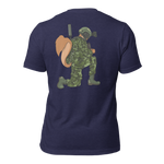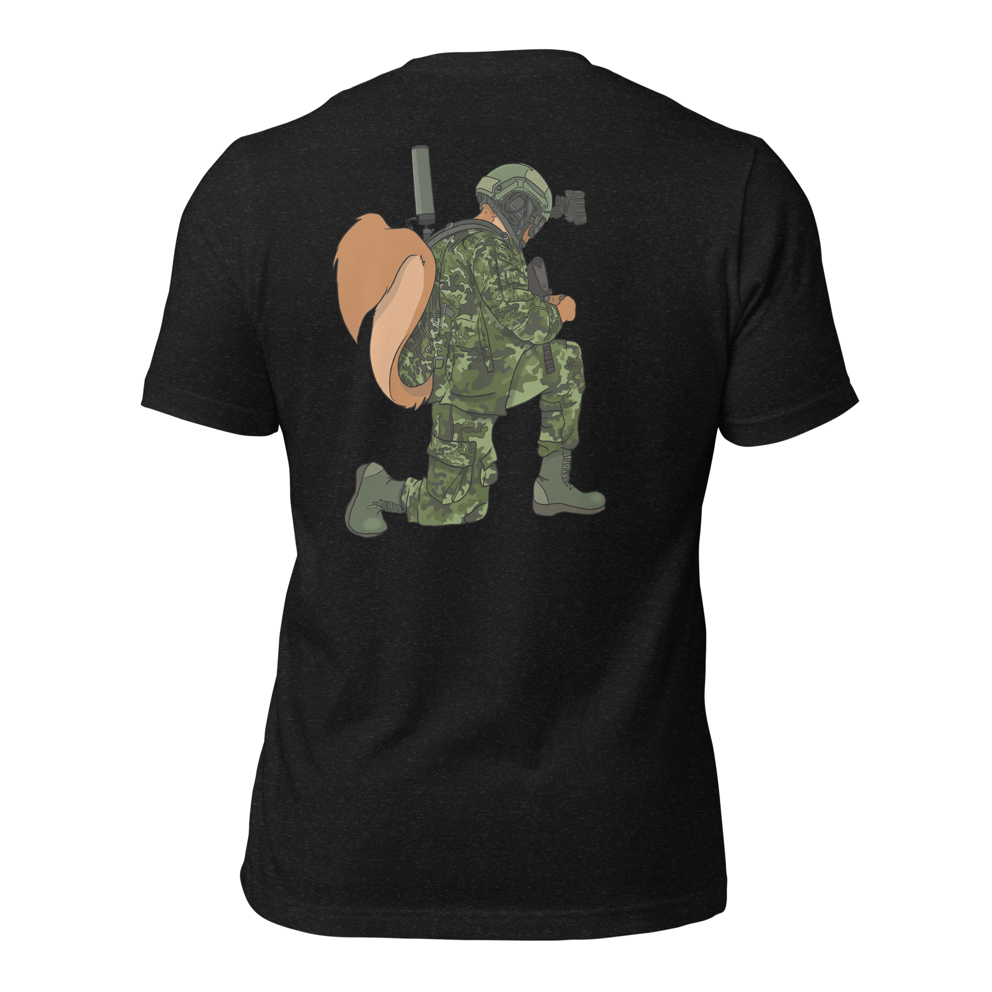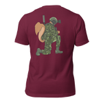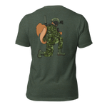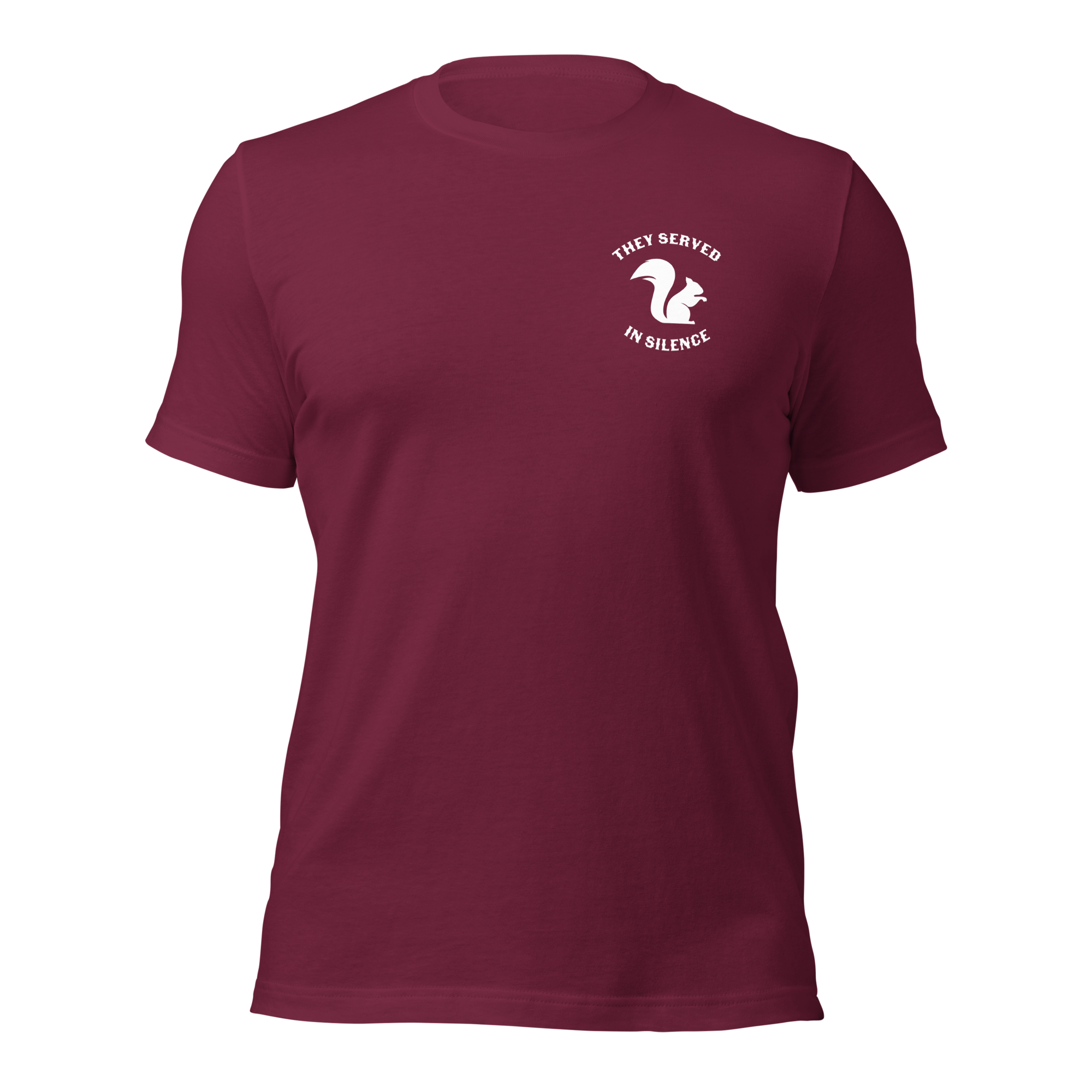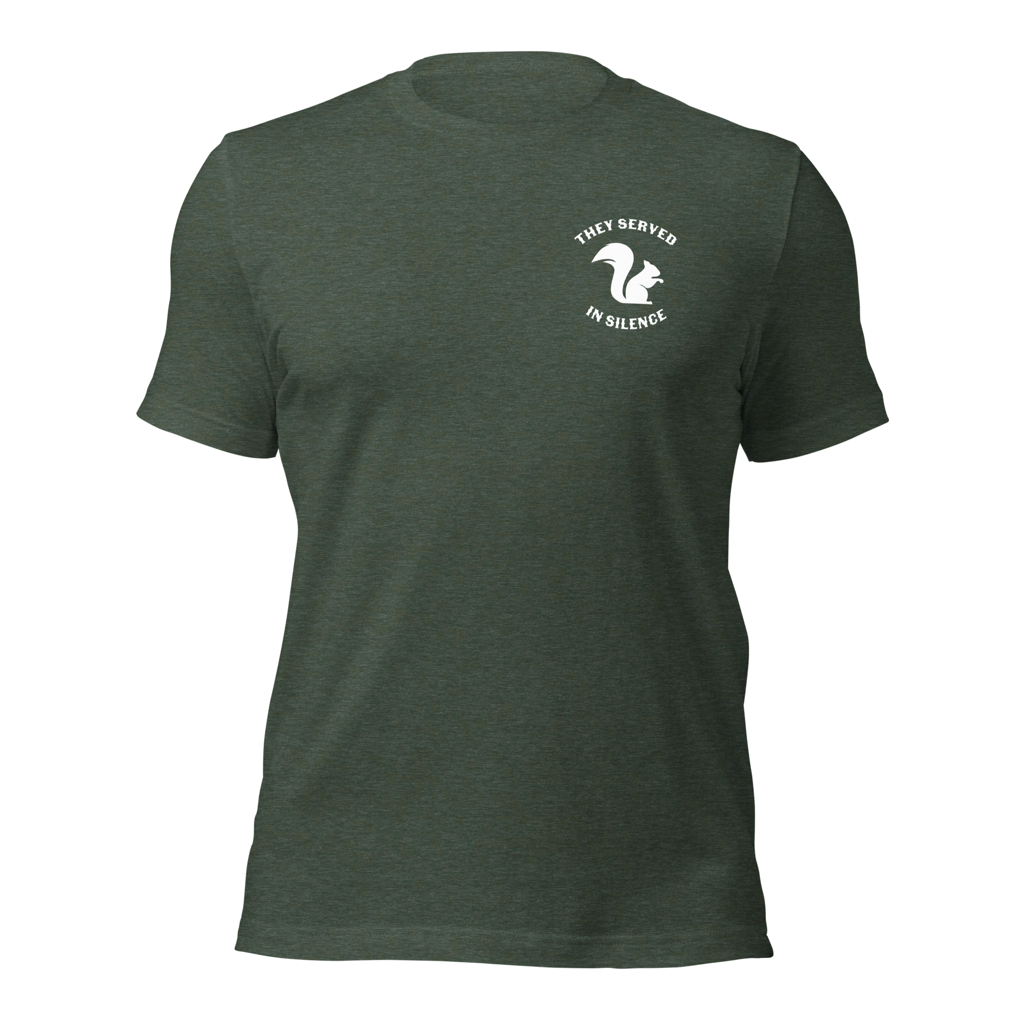 Honor the quiet heroes with the They Served in Silence tee — a powerful tribute to those who protect, serve, and carry the weight of duty without recognition. Featuring a bold front chest print and a full-back illustration of a kneeling camouflaged squirrel operator, this shirt blends patriotic respect with signature Squirrel Saloon attitude.