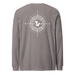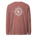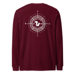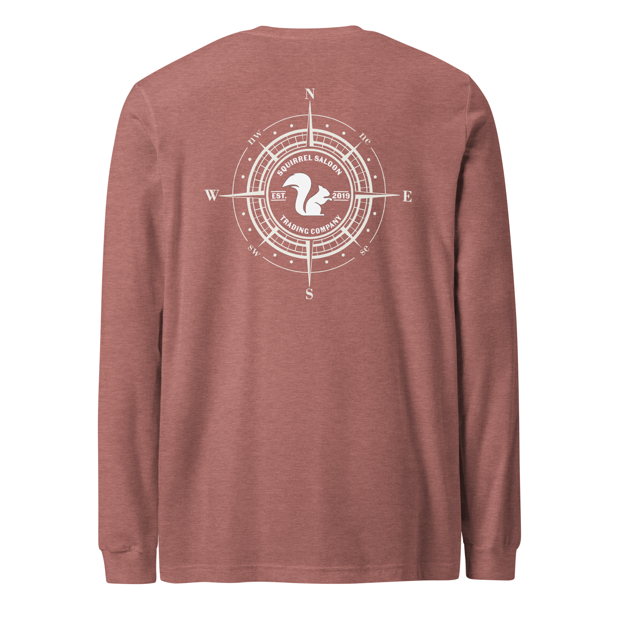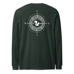 The Woodland Navigator Long Sleeve Tee combines rugged outdoor style with the clean, iconic look of Squirrel Saloon Trading Company. The front features the classic SSTC squirrel silhouette, while the back showcases an intricately designed compass rose with the Squirrel Saloon emblem centered proudly within it.