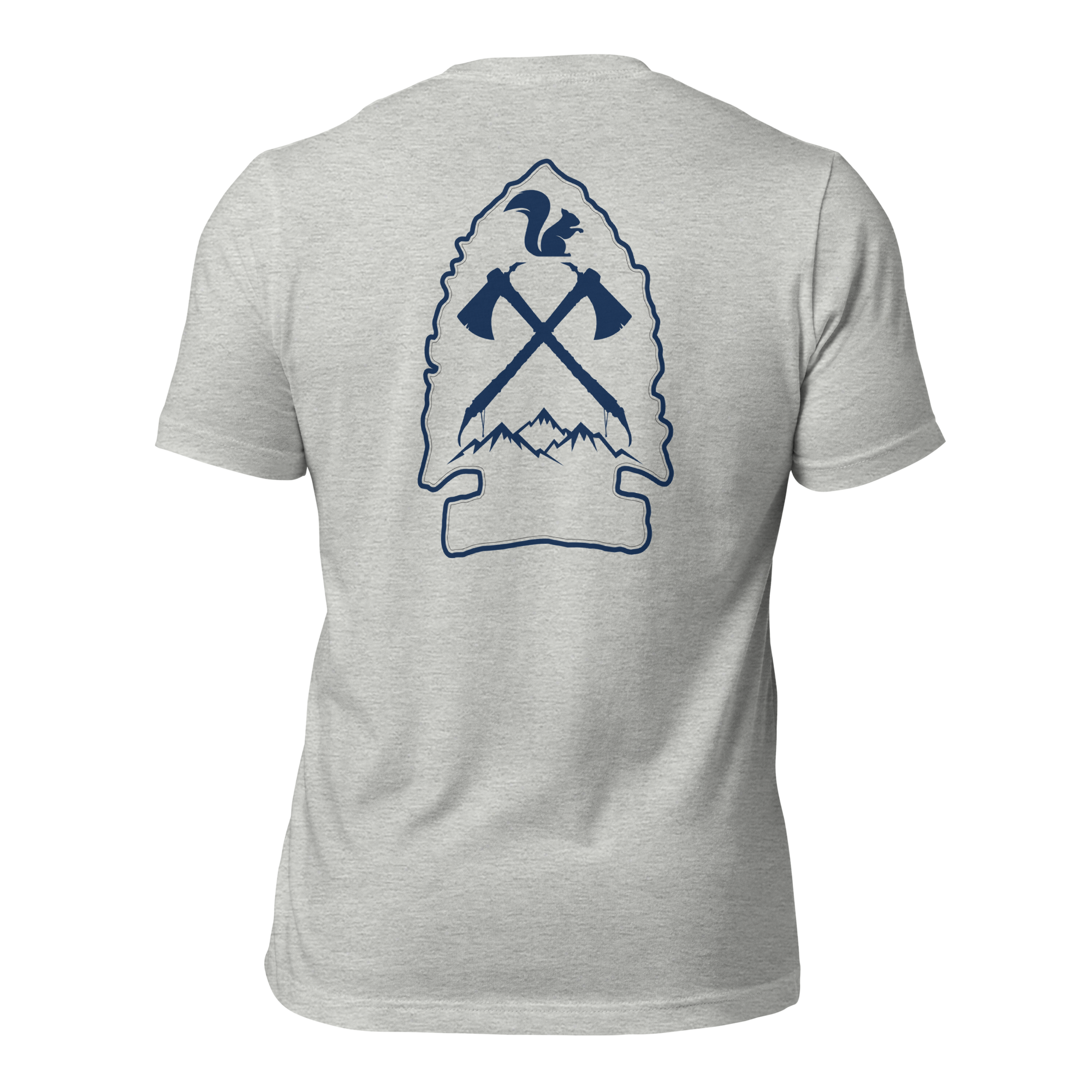 Channel rugged frontier spirit with our Hatchet and Hallow Tee, built for those who thrive in the wild. This tee features a clean front graphic showcasing the Squirrel Saloon emblem inside a bold arrowhead outline. The back design expands the story—crossed hatchets, mountain peaks, and our iconic squirrel crest form a tribute to hard work, heritage, and the great outdoors.
